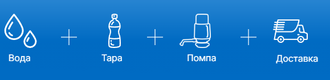 • На первую доставку по пакету «Супер Старт» оформляются: помпа + 2 тары + 2 воды 19л. Вторая доставка – 2 воды 19л.